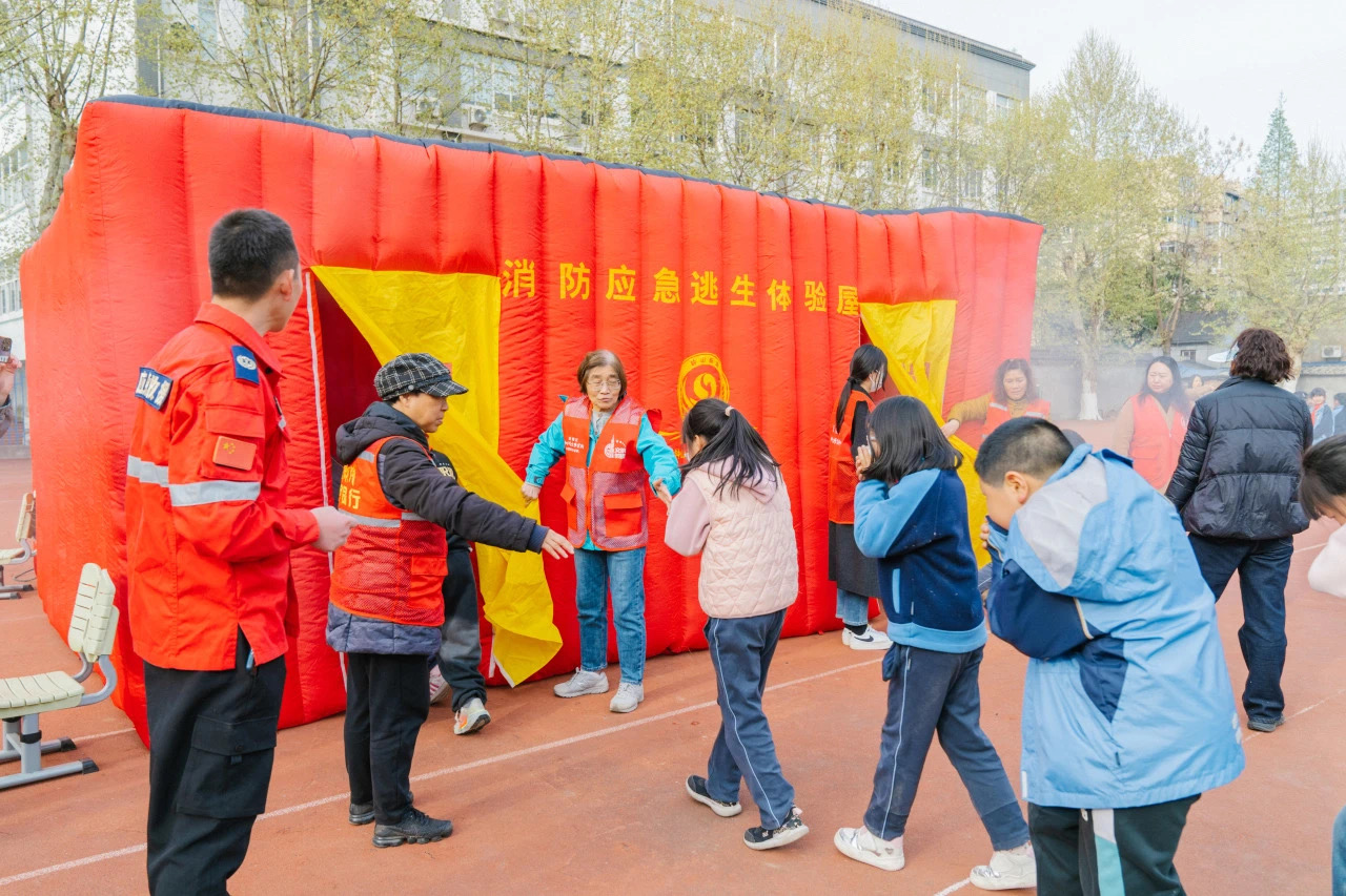 最令人难忘的是消防应急逃生体验屋的体验环节。消防应急逃生体验屋内部设有“隔断墙”,分隔成迂回曲折的走道空间,为迷宫形式,分别设置一个进口和一个出口,进出口上带有遮光用的门帘。点燃烟饼制造出烟雾,屋内最大程度模拟出逼真的火灾现场。同学们一走进逃生体验屋,就立即被浓烟和黑暗包围,“弯腰、低姿、捂口鼻”,在志愿者的指引下,同学们按照逃生要领,在迷宫般的通道中摸索前进,实地体验火灾黑暗、浓烟环境逃生时的安全防护动作和生理、心理感受。逼真的烟雾环境、曲折的逃生路线,给孩子们上了最生动的一课,让每个参与者都深刻体会到掌握逃生技能的重要性。