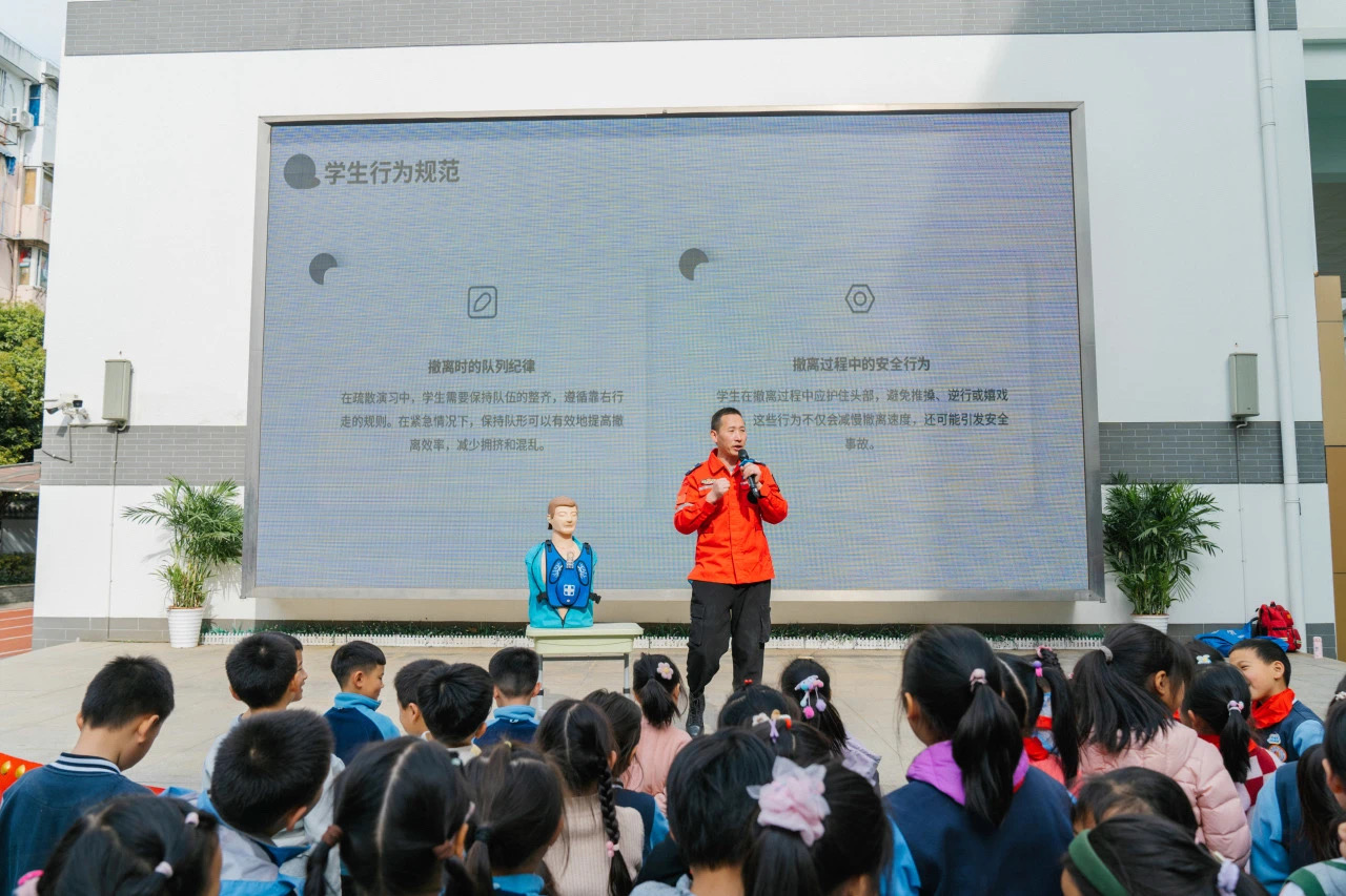 活动伊始,来自南京钟山应急救援促进中心的李颜主任为同学们带来了一堂干货满满的安全教育课。他向学生们深入介绍了学校环境中常见的伤害应对方法,并针对心肺复苏、异物卡喉(海姆立克急救法)、外伤出血、骨折、鼻出血等意外伤害,详细讲解了正确的急救步骤和注意事项。同时,李主任还介绍了春游、火灾、溺水等特定情境下的安全措施,以及紧急疏散时的正确行为。